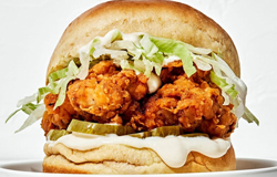 dusted chicken thigh, house slaw, dill pickles, alabama white bbq, brioche bun. spice it up with buffalo sauce