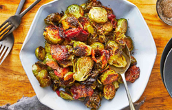 sprouts, bacon, maple syrup, parm, pickled red onions ( vegetarian+vegan options available)