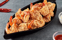 tail on torpedo shrimp with mango chipotle seasoning, thai chili sauce