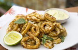 rings of calamari, whole shrimp, broccoli, pepperoncini peppers, cajun breading. lemon, alabama white bbq for dipping